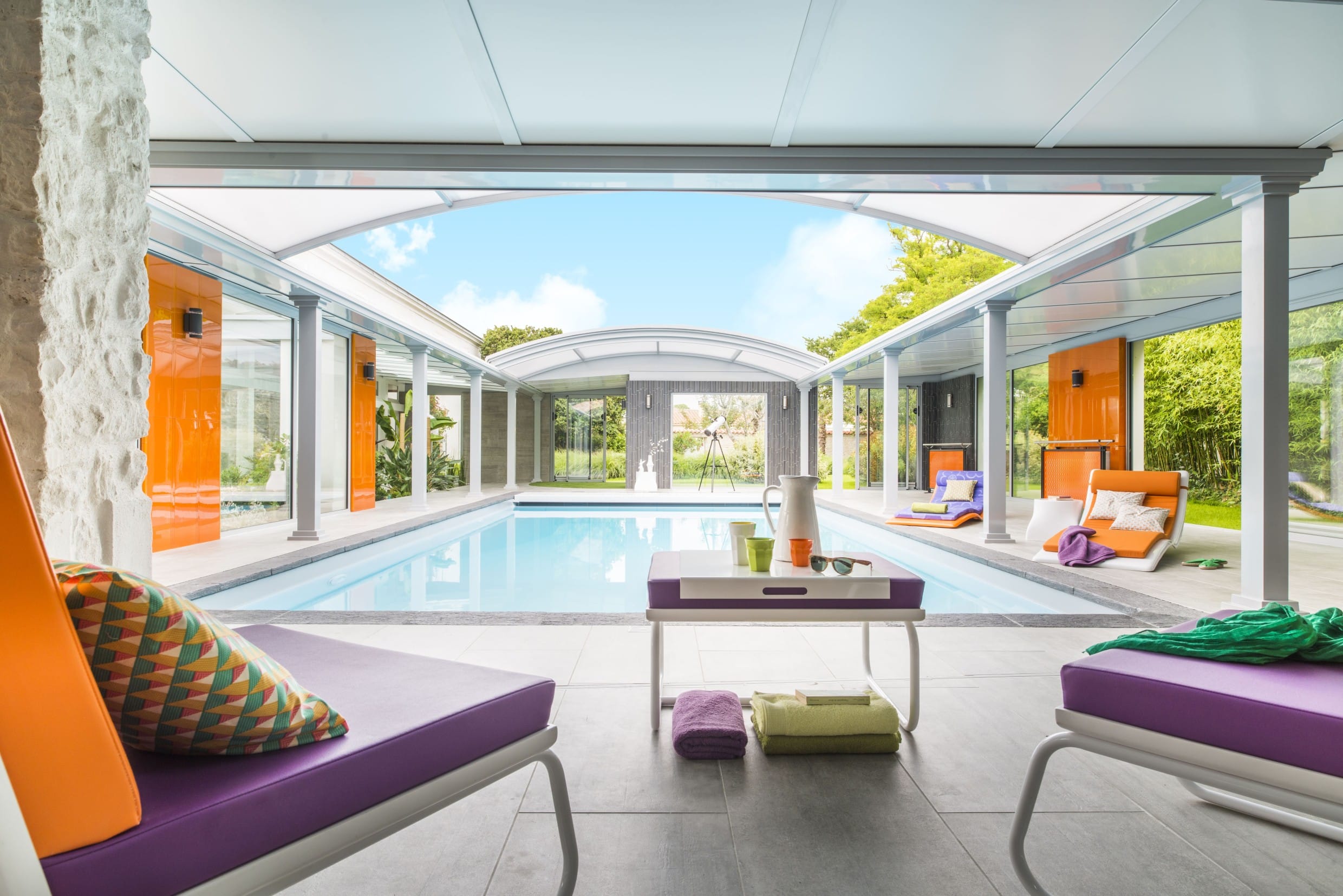Ce type de toiture innovante permet de profiter pleinement de tous les avantages d’un abri de piscine haut.