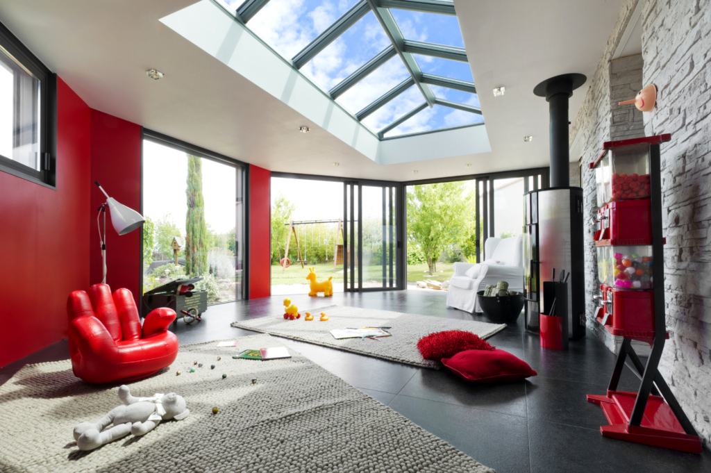 Performance et esthétique sont donc au rendez-vous pour cette extension maison aluminium de type industrielle, idéale pour les amoureux du style et du confort.
