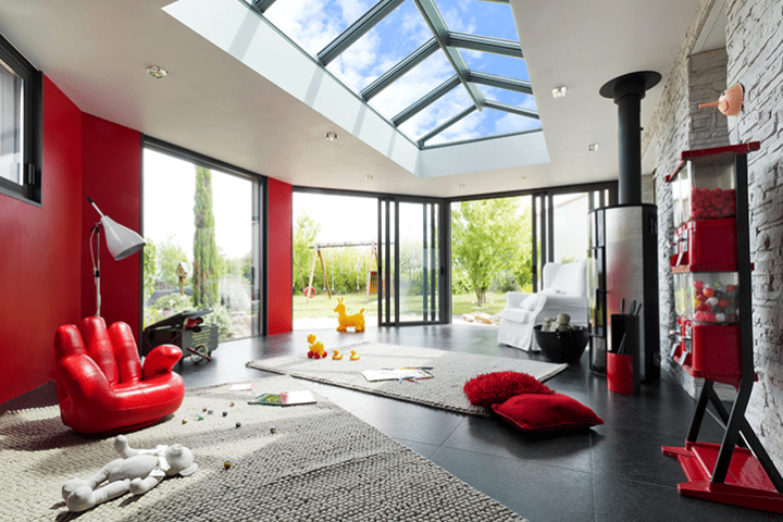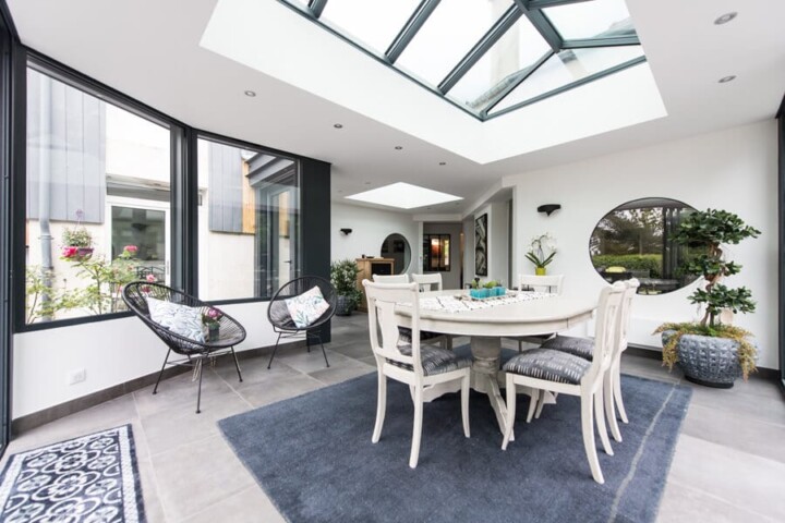 Performance et esthétique sont donc au rendez-vous pour cette extension maison aluminium de type industrielle, idéale pour les amoureux du style et du confort.
