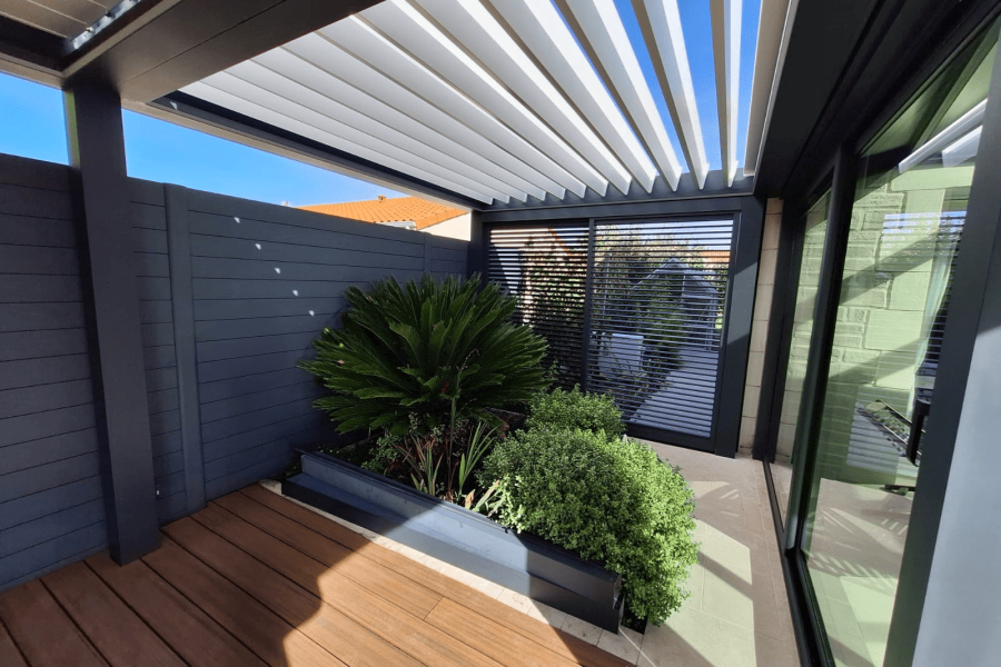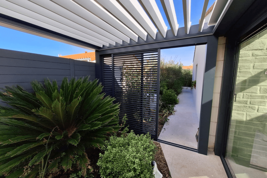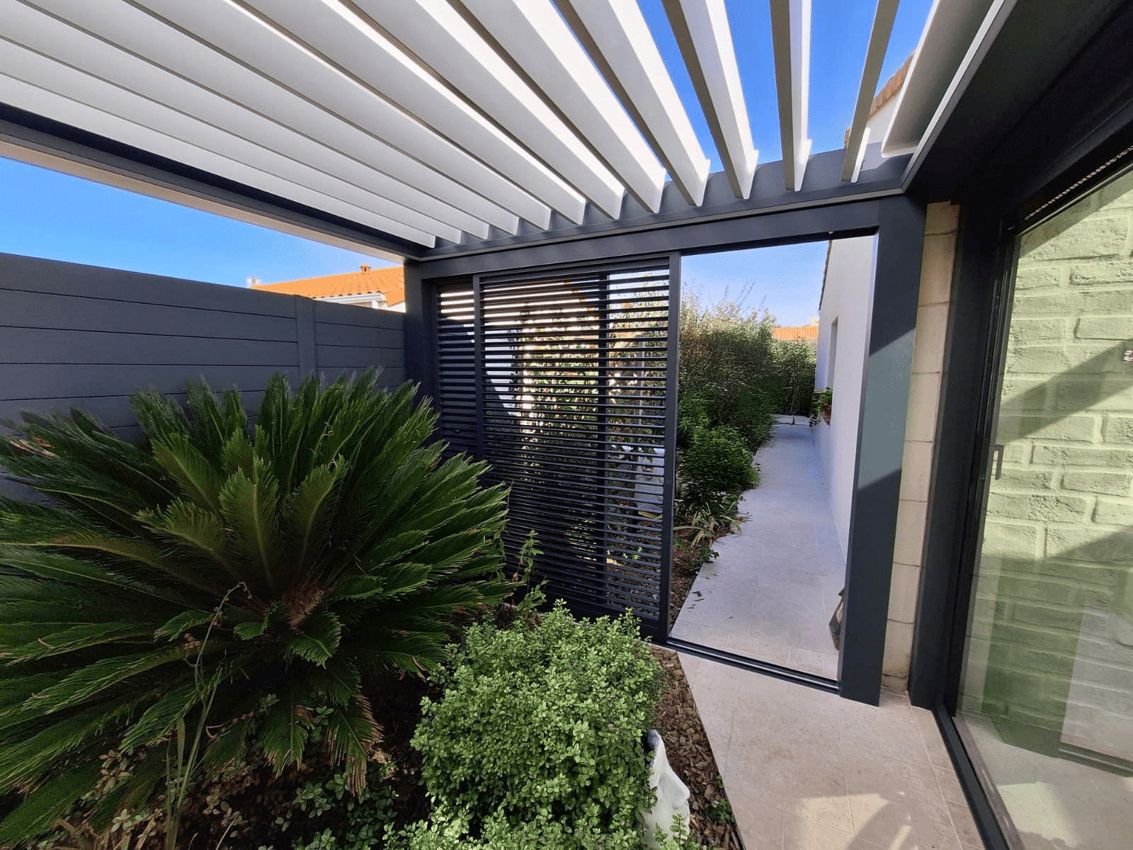 La brise vue coulissant à lames orientables combine fonctionnalité et esthétisme. Il offre une protection de l’intimité et une gestion facilitée de l’entrée d’air et de lumière.