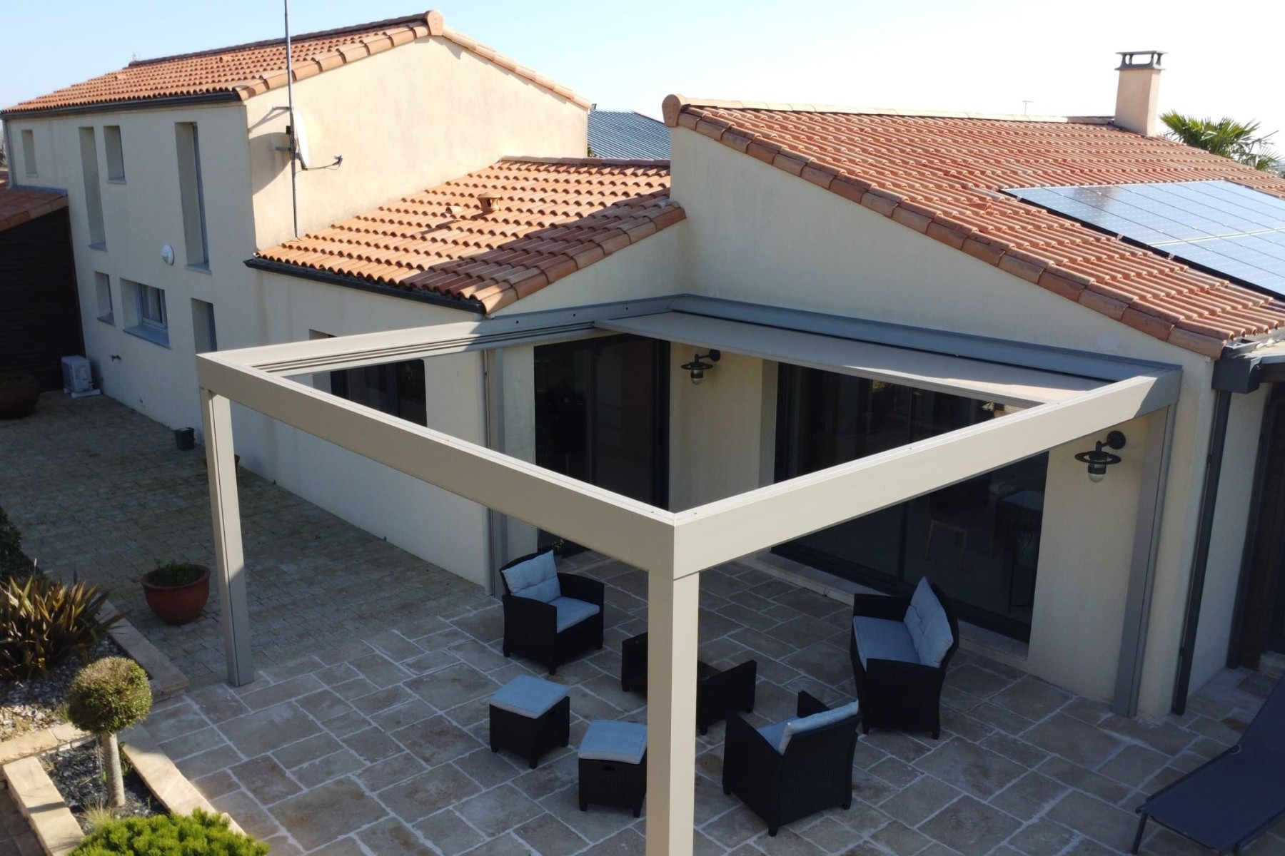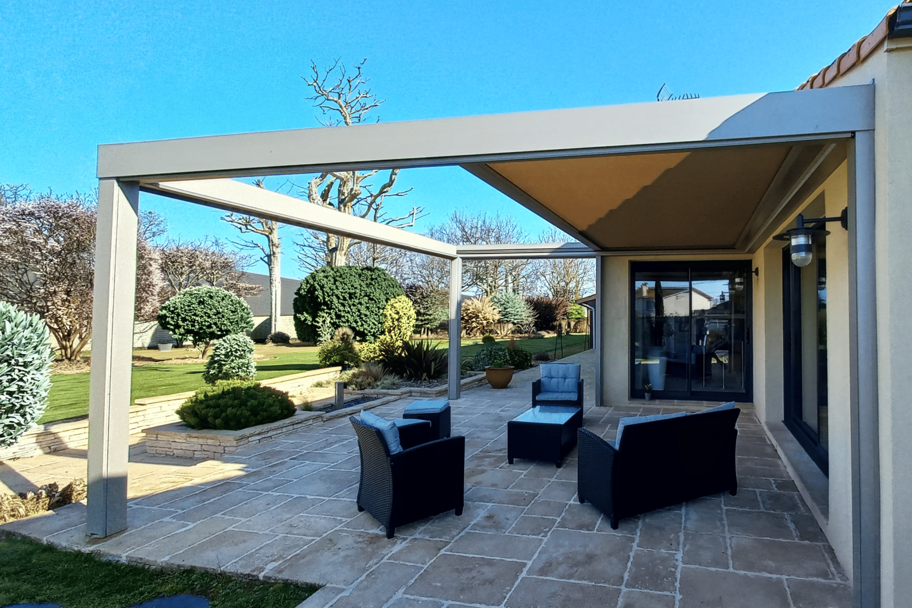 Parce que votre confort est essentiel, LA Pergola toile peut intégrer des solutions modernes. Profitez d’un usage simplifié grâce à l’automatisation, aux systèmes de commande intuitifs et aux solutions d’éclairage pour prolonger vos soirées.